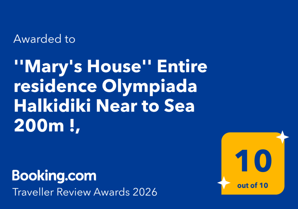 Το ”Mary’s House” Entire residence Olympiada Halkidiki Near to Sea 200m! βρίσκεται στην Ολυμπιάδα και παρέχει δωρεάν WiFi και θέα στο βουνό. Έχει επίσης κήπο, κοινόχρηστο χώρο lounge και βεράντα. Αυτό το κατάλυμα προσφέρει μπαλκόνι και δωρεάν ιδιωτικό χώρο στάθμευσης. Μια άψογη εξοχική βίλα πλήρως επιπλωμένη με 2 Air Conditioner-barbeque με εξωτερικό μπάνιο, τεράστια αυλή-κήπο σε 800 τ.μ. Οικόπεδο, και περιλαμβάνει τα πάντα ακόμα και για τους πολύ απαιτητικούς. Η γειτονιά είναι φιλική θα αισθανθείτε σαν το σπίτι σας.